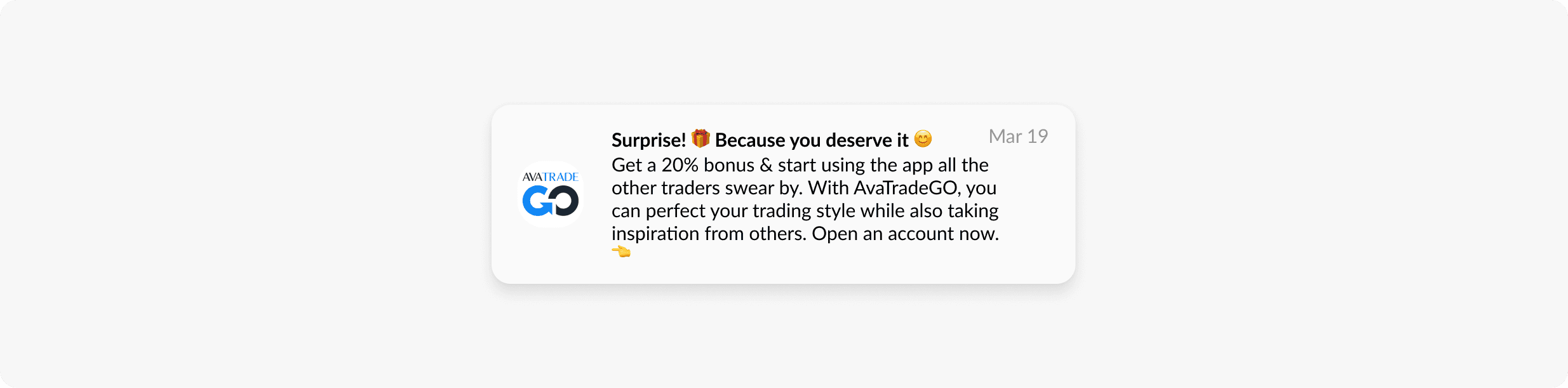 • Personalized motivation: Messages highlighted AvaTrade’s unique value and welcome bonuses, addressing potential concerns and driving action:
