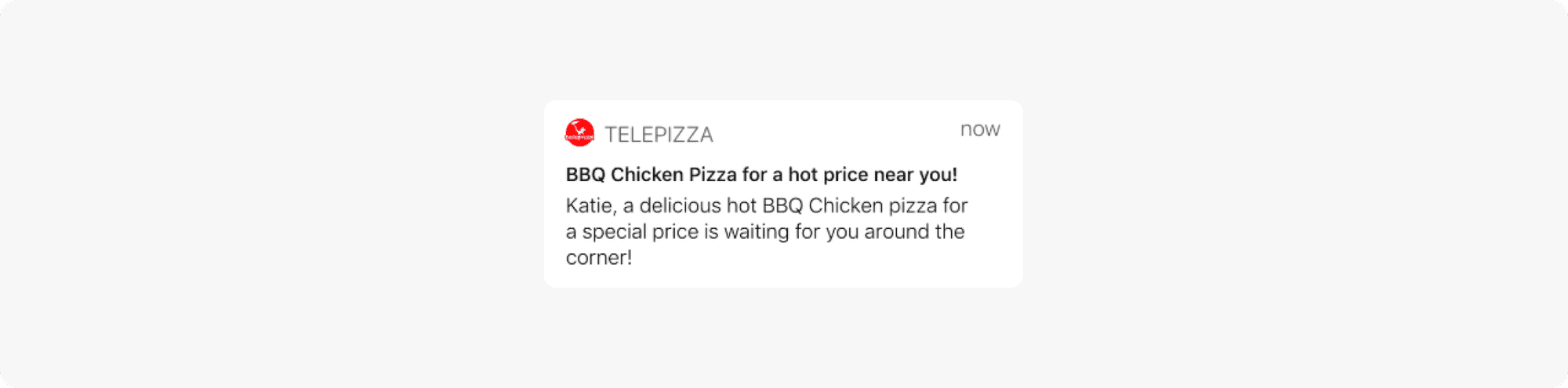 • Telepizza implemented the Pushwoosh Geozones feature to engage users within 300–500 meters of a restaurant. • Once a customer entered a defined geozone, they would receive a push notification with a special offer: